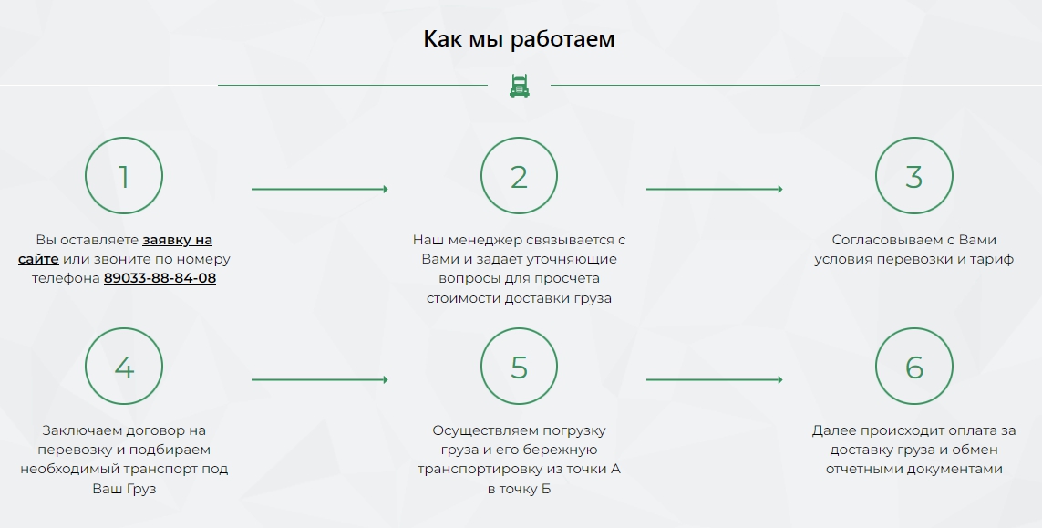 При использовании грузовых автомобилей ведется отслеживание груза, который доставляется до конкретного места. Выполняется быстрая транспортировка при расчете оптимального маршрута. Компания перевозит грузы, требующие специальных условий.