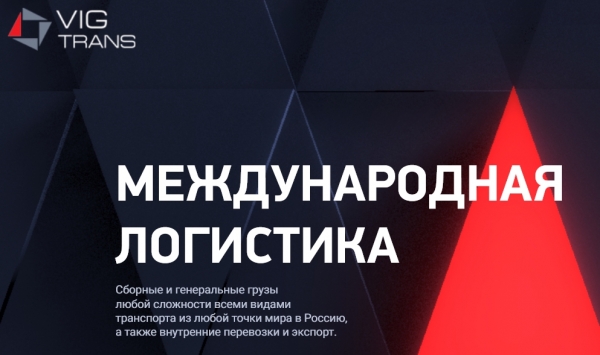 VIG Trans – транспортно-экспедиторская компания, которая занимается организацией внешнеэкономической деятельности. Осуществляет импорт и экспорт мало- и крупногабаритного груза доступными видами транспорта: воздушным, морским, железнодорожным. Имеет статус оператора логистики, таможенного брокера.