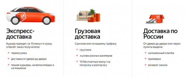 Есть разные варианты доставки. Пеший курьер возьмёт вещи весом до 10 кг — подойдёт, если надо отвезти бумаги или небольшой пакет. Для чего-то потяжелее (до 20 кг) лучше вызвать курьера на машине. Обычно они приезжают быстро, а маршрут система строит сама, чтобы доставить без лишних кругов. Если же нужно перевезти реально крупный груз, до 1,4 тонны, есть тариф «Грузовой». Там ещё можно заказать грузчиков, что удобно, если коробки тяжёлые.